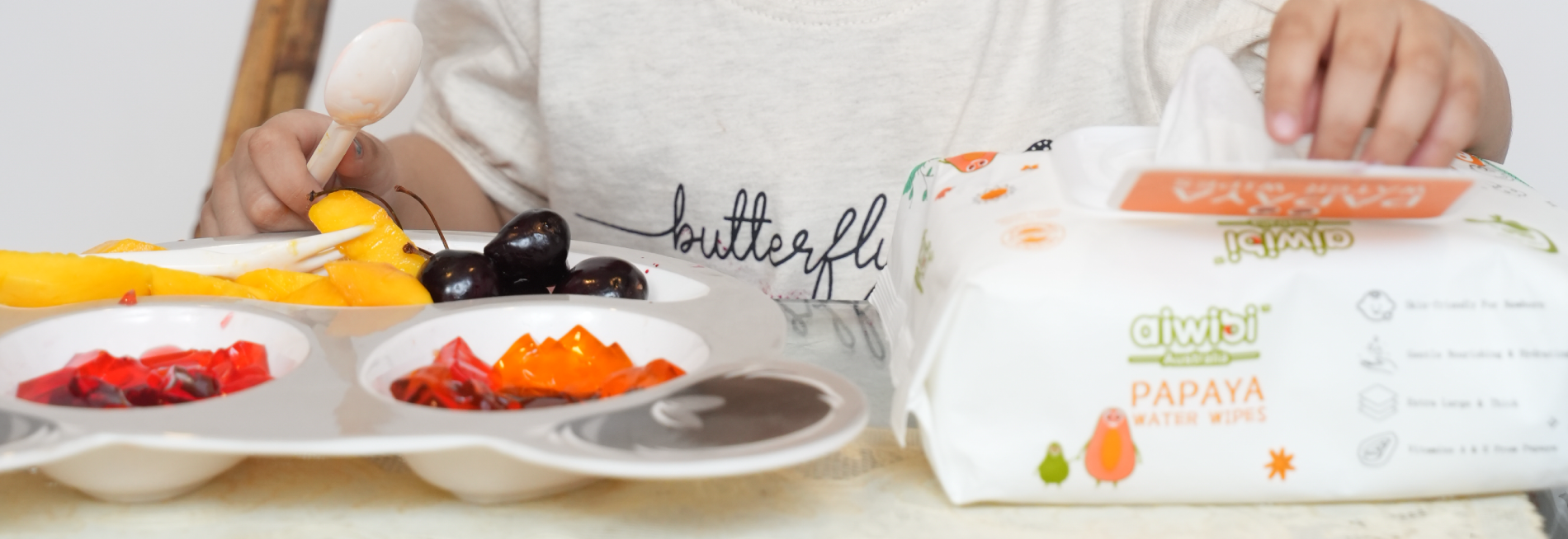 Khăn lau khô Aiwibi được làm từ 100% sợi thực vật phân hủy sinh học, mang đến sự chăm sóc nhẹ nhàng cho làn da nhạy cảm của trẻ sơ sinh.